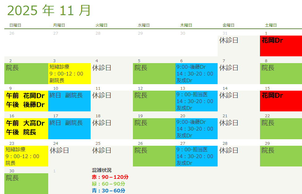 - 11月診療予定表 [2025.09.30更新]